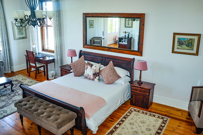 The main bedroom offers an extra-long queen size bed, a chest of drawers, a large wardrobe and a desk.